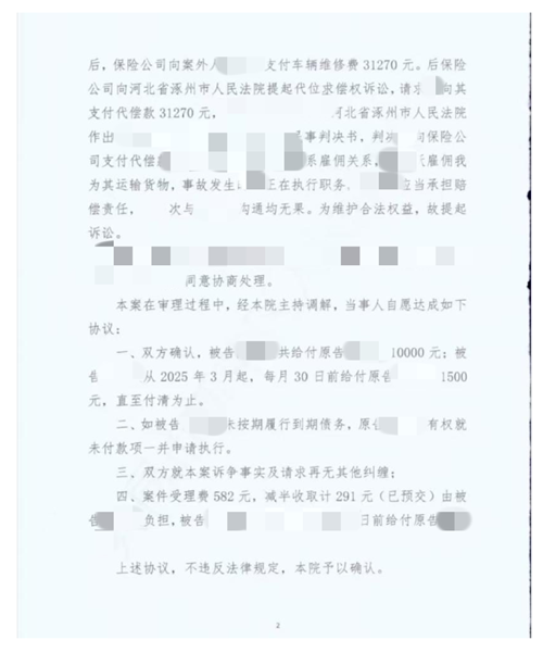 2024年5月,涿州市人民法院作出民事判决书,判令当事人向保险公司支付31,270元。