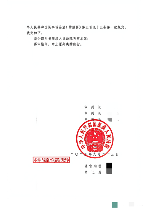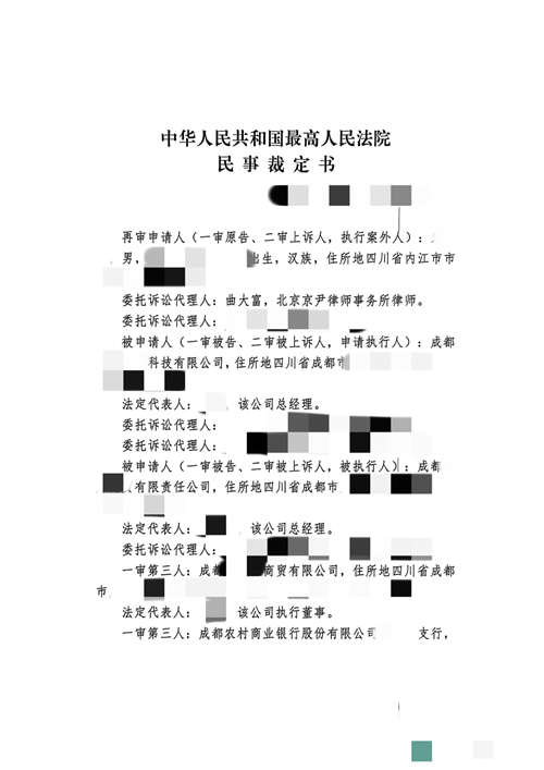 无奈之下,当事人宋某某不服四川省高级人民法院的裁定,遂委托北京京尹律所曲大富律师团队,向中华人民共和国最高人民法院提起再审。
