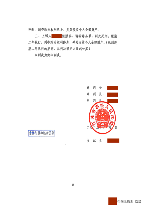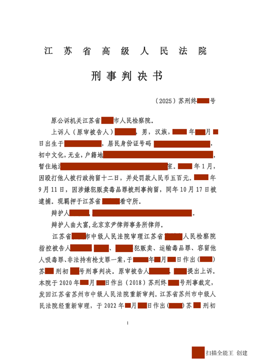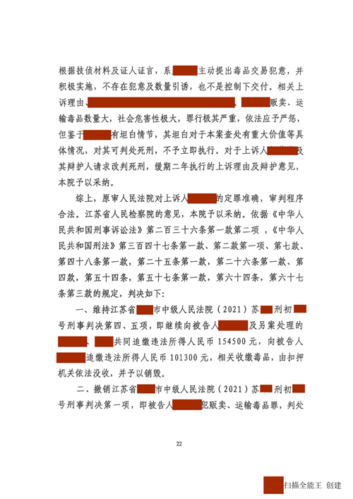 江苏省高级人民法院经依法开庭审理,于2020年12月作出刑事裁定,以本案部分事实不清为由,撤销原审判决,发回江苏省某市中级人民法院重新审判。江苏省某市中级人民法院经重新审理,于2022年6月作出刑事判决,认定被告人犯贩卖、运输毒品罪,判处死刑,剥夺政治权利终身,并处没收个人全部财产。