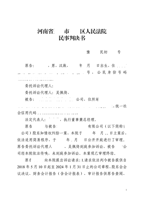 在庭审阶段,吴佩倚律师进一步指出:根据原告所提交的《企业信用信息公示报告》,原告系被告公司的股东,原告作为被告公司的股东享有股东知情权。基于此,原告有权查阅、复制被告公司自2018年5月起至2024年1月期间的公司章程、股东会会议决议、财务会计报告(含会计报表)和审计报告等。