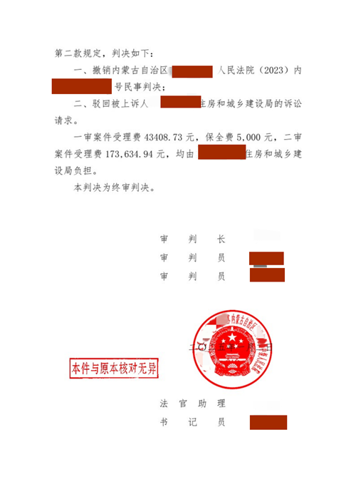 此外,在二审诉讼过程中,京尹律师对住建局提交的证据进行了质证,并提出了反驳意见。在法庭辩论中,京尹律师强调了一审法院的错误认定和程序违法问题,并主张内蒙古某工程项目管理有限责任公司的鉴定意见书不能作为本案的定案依据。
