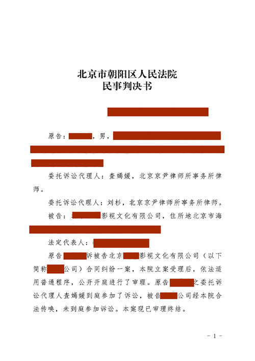 为了维护自身的合法权益,原告弥某委托北京京尹律师事务所查嫣媛律师、刘杉律师代理本案,将被告北京某影视文化有限公司诉至法院,请求法院判令被告返还投资款并支付违约金。