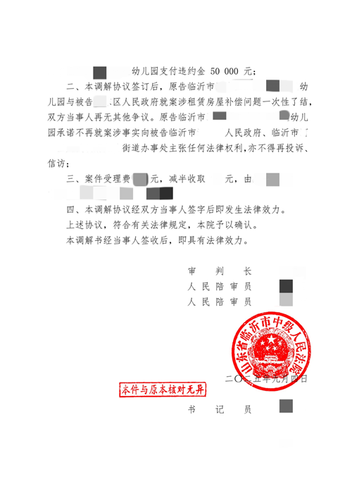 2025年9月,临沂市中级人民法院在重审过程中组织调解,原、被告双方自愿达成如下协议: