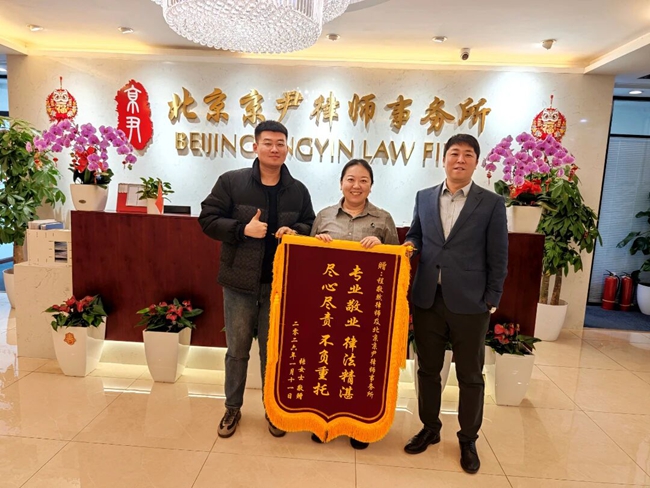 1月13日,北京京尹律所程敬然律师收到了一份跨越千山万水、饱含深情厚谊的礼物——一面由当事人亲手寄来的鲜红锦旗。锦旗上,“专业敬业 律法精湛;尽心尽责 不负重托”十六个鎏金大字熠熠生辉,不仅闪耀着对程律师专业能力的高度认可,更承载着当事人沉甸甸的信任与感激。
