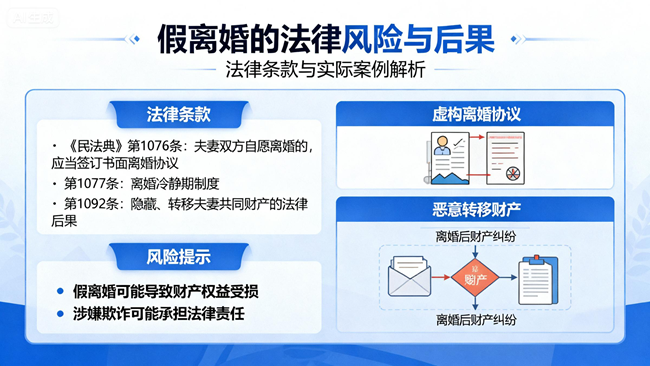在现实生活中,部分夫妻为了获取购房资格、享受购房优惠政策等目的选择 “假离婚”。然而,从法律层面来看,并不存在 “假离婚” 的概念,一旦夫妻双方办理了离婚登记手续,婚姻关系即正式解除,其产生的法律后果与 “真离婚” 并无二致。