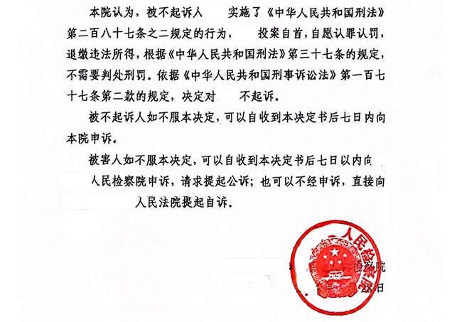 本案不起诉决定书