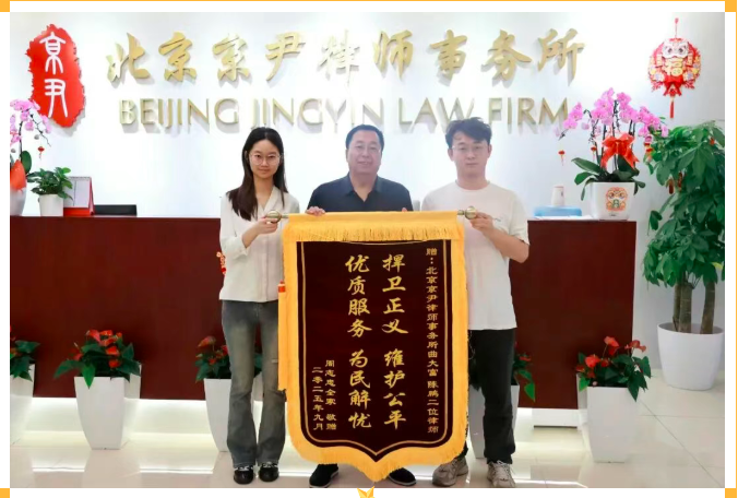 9月26日,当秋日的第一缕暖阳刚刚洒进京尹律所的大门,曲大富律师团队便收到了一份暖心的礼物:当事人周先生特意从千里之外邮寄而来的一面鲜红锦旗。锦旗上,"捍卫正义 维护公平;优质服务 为民解忧"16个金色大字闪闪发光。